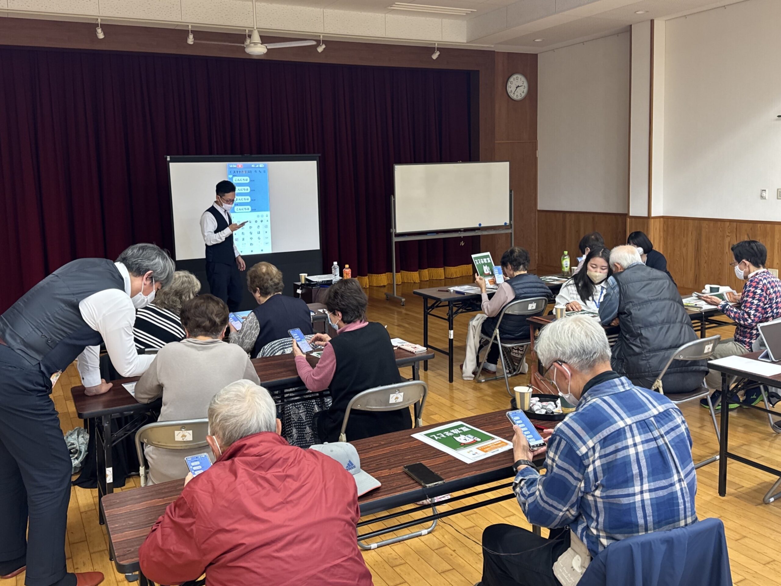 講師の用意した体験機を使って受講するので、普段スマホを使っていない方も気軽に参加できます。