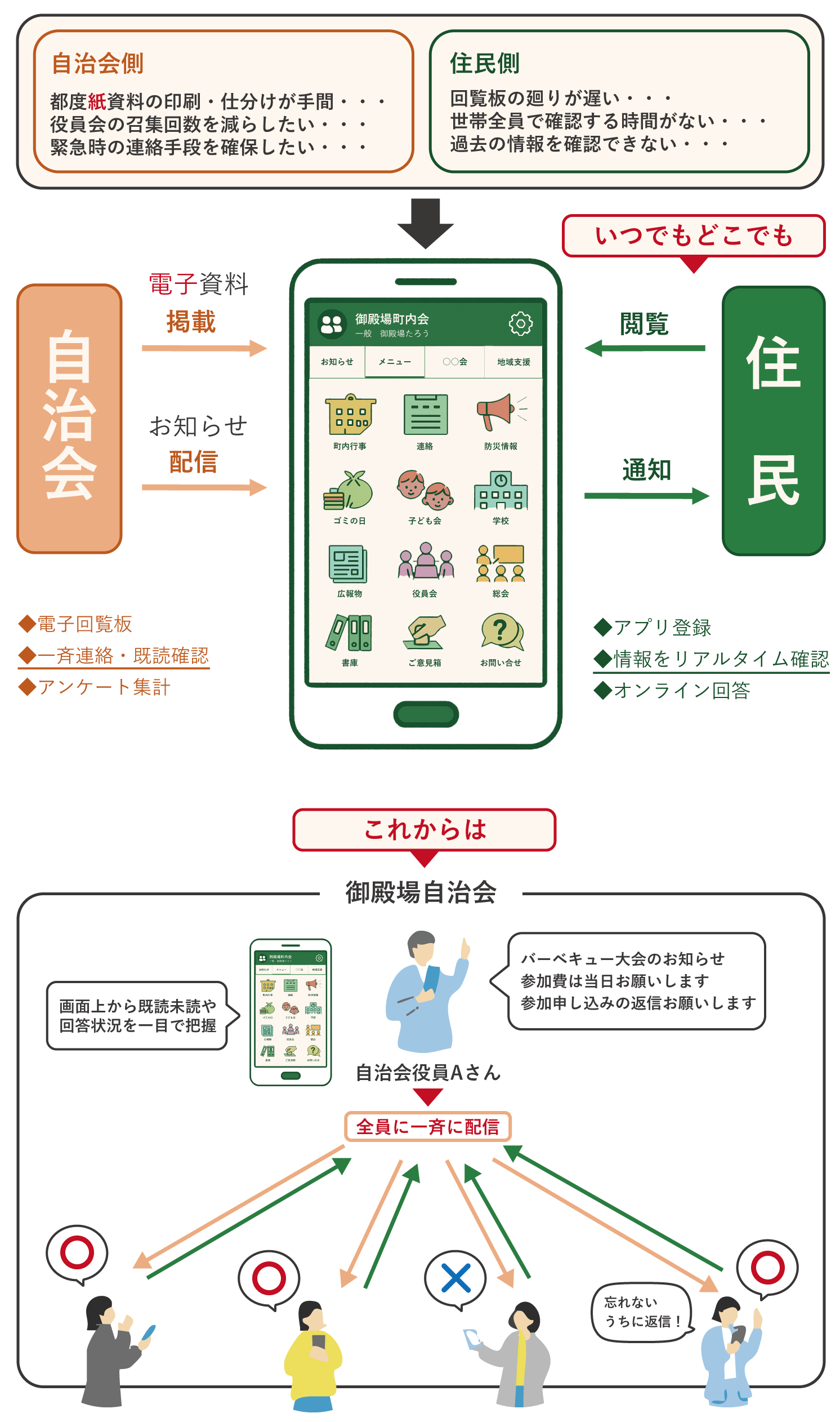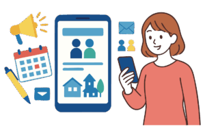 アプリを活用した自治会活動の効率化や情報伝達の迅速化を支援しています。