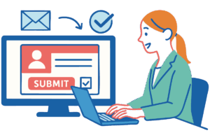 オンライン申請サービスでは、インターネット上で完結する申請と、事前に日時を選択して窓口にお越しいただく来庁予約があります。